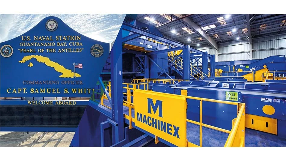 Machinex, Plessisville, Quebec, has announced the startup of a new single-stream processing system and other various waste processing/baling/shredding equipment for the U.S. naval station in Guantanamo Bay, Cuba.