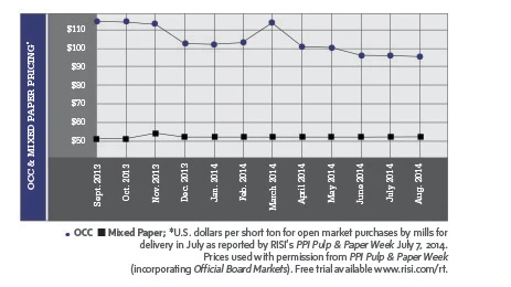 As of early August, Southeast- and Northeast-based recovered fiber dealers say pricing is trending downward for old corrugated containers (OCC), old newspaper (ONP) and mixed paper. At the same time, however, several recyclers in the Midwest say they are seeing better movement and firmer pricing for OCC.