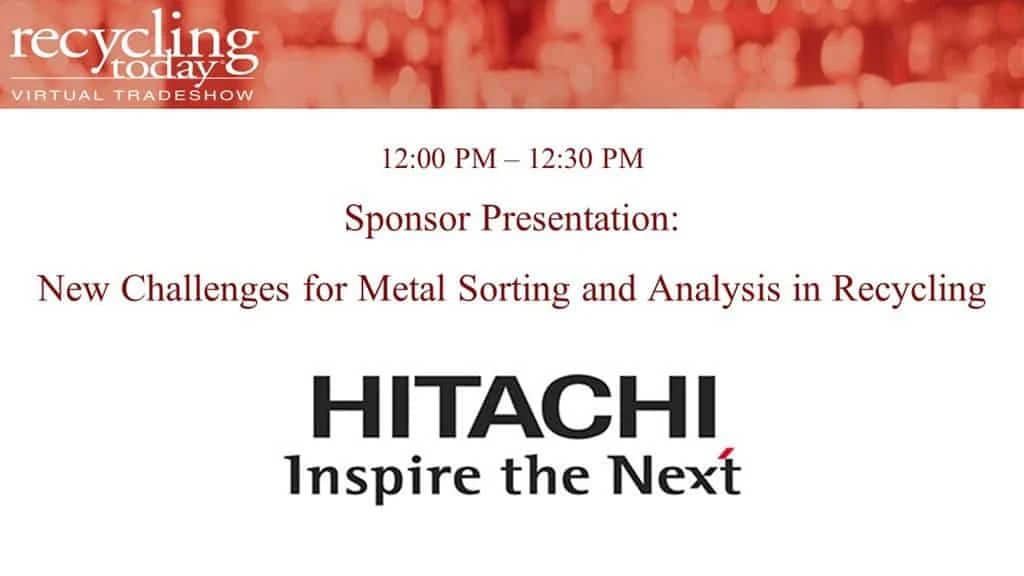 Hitachi High-Tech Analytical Science America In this presentation, we will discuss how increased reliance on high quality recycled metal in secondary metal production is placing a higher demand on material analysis and sorting equipment. We will cover the range of metal sorting and analysis tools available today, and how they can be used to meet these challenges. Speaker: Jordan Rose, Marketing Manager Americas, Hitachi High-Tech Analytical Science America