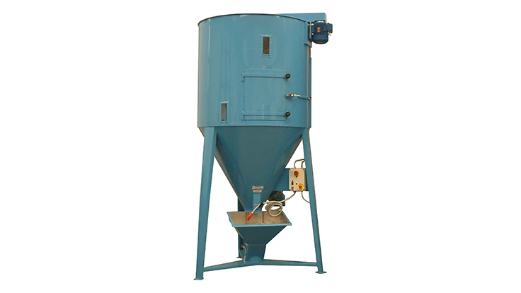 Available in capacities from 350 to 30,000 liters (12.4 to 1,060 cubic feet), the Lorandi mixing silos combine temporary storage for pellets and regrind with vertical auger mixing. New material enters the silo at the bottom and is lifted though the resin and deposited on top. Load cells under the base of the silos are connected to an electronic control system that can weigh material as it enters or leaves the container, allowing for accurate proportioning and or batching into shipping containers.