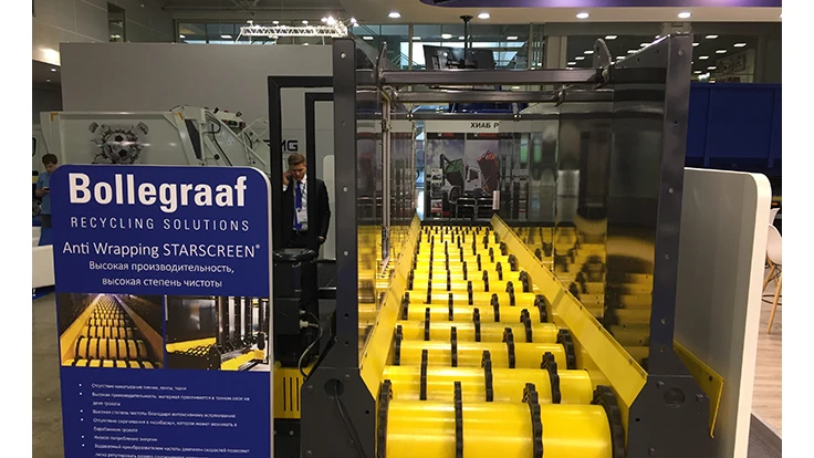 Visitors to WasteTech 2017 also will be able to see the Lubo Anti Wrapping StarScreen. Bollegraaf says the machine “solves the common problem of wrapping of materials and ‘sausage formation’ by its ‘aggressive agitation’ system, which prevents small waste fractions from sticking to larger ones.” Obstructive sausage formation is prevented because the large fractions are not spun around as they would be in a drum separator, according to Bollegraaf.