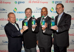 | Left to right: Lee Edwards, CEO, Virent; Patrick Gruber, CEO, Gevo Inc.; Rick Frazier, vice president, commercial product supply, The Coca-Cola Co.; and Tom van Aken, CEO, Avantium |