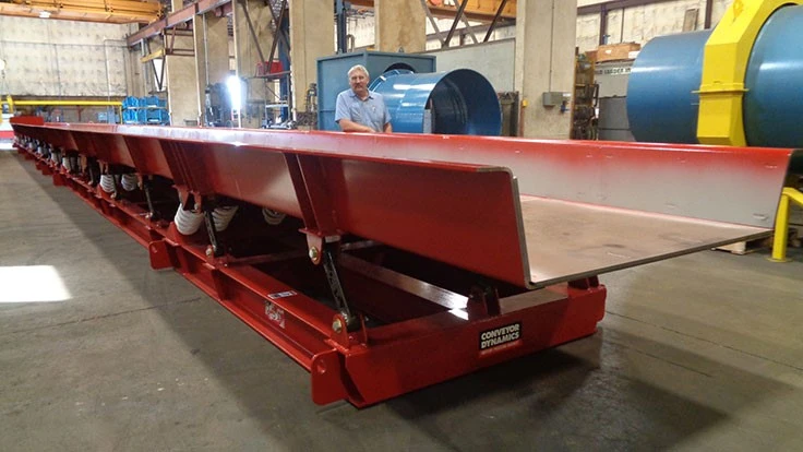 In addition, Conveyor Dynamics updated the aluminum rocker leg normally used on vibratory equipment to an extra heavy-duty design that used ductile iron for increased strength and longevity. The company designed its stabilizers, springs and drives to be interchangeable with other vibratory manufacturers so customers have a choice. This enables customers to reduce their spare parts inventory, as well.