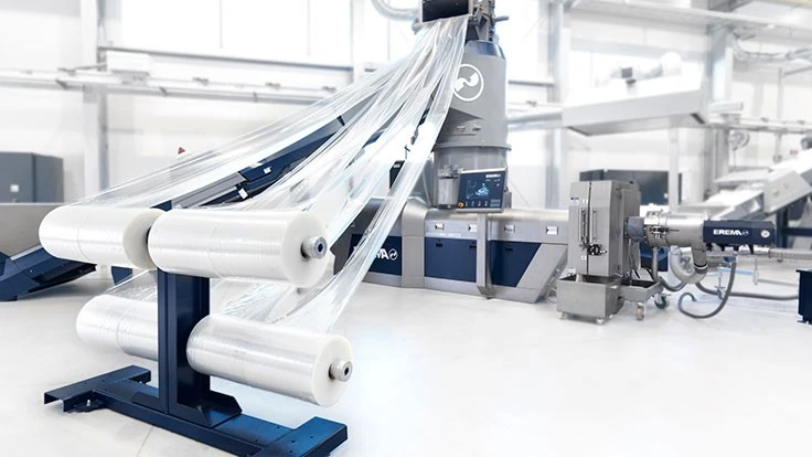 For this reason, Erema North America has added an Intarema TVEplus with Laserfilter to its Technical Centre for customer trials, especially of postconsumer materials with a high degree of contamination. This system typically processes film waste with paper labels from commercial waste or washed film from curbside waste to make film-grade pellets, the company says.