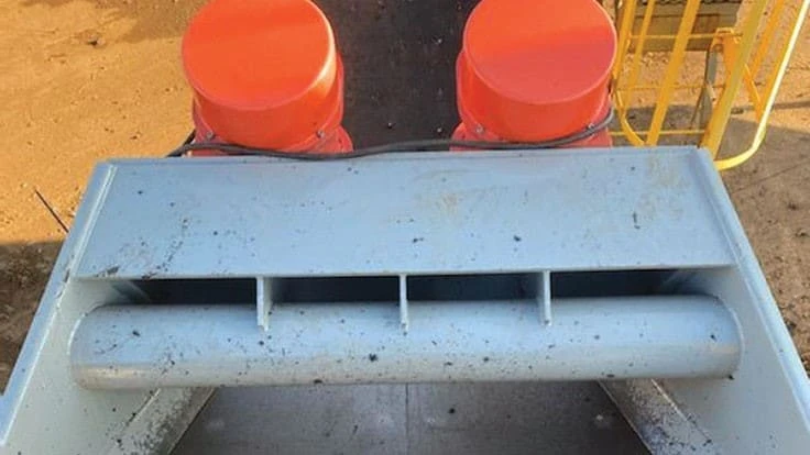 Eriez Product Manager of Vibratory Screening Rob Yandrick was on the design team. “The abrasion-resistant steel tray we installed is unique,” he says. “This was a tight spot—48 inches by 46 inches by 6 inches—so a unique tray geometry was required to fit the existing layout. In fact, we designed the overhead drive to keep the motors up and out of way.”