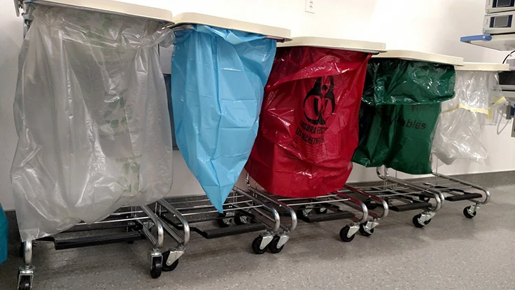 Participating hospitals included Advocate Illinois Masonic Medical Center and NorthShore University HealthSystem’s Evanston, Skokie and Glenbrook hospitals. These hospitals collected a variety of health care plastics, primarily from main operating rooms and ambulatory surgery centers, including polypropylene (PP) and polyethylene (PE) resins in the form of sterilization wrap, irrigation bottles, basins, pitchers, trays, Tyvek and rigid and flexible packaging materials. These materials were then transported by waste haulers to material recovery facilities (MRFs) for assessments related to composition and quality. Complexity of material types, improper sorting and the presence of nonconforming materials were the primary challenges in being able to extract the recycling value from the materials, according to the project.