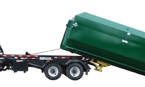 With the LowLift hoist in the horizontal position, the carriage can push a container onto a dock or trailer, enabling fast loading of pup trailers. At a disposal site, the container is powered rearward before raising the LowLift hoist, eliminating the need for 75,000-pound lift cylinders.