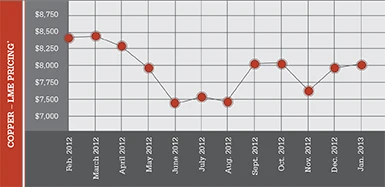 Scrap dealers in the U.S. are looking in the direction of China and wondering what role the country’s copper consumers will play in the market this year. In early February orders dropped off in anticipation of the Lunar New Year, which was Feb. 10. By the end of February, once business resumed after the holiday, scrap metal exporters in the United States likely will have a better picture of where the markets will be moving through the first half of 2013.