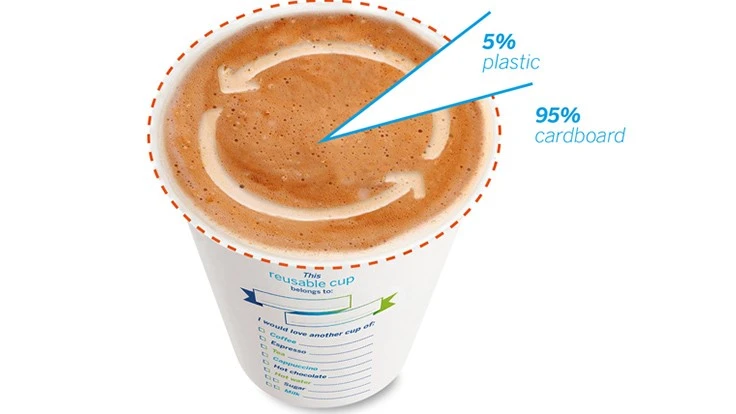 The Beautiful Cups are Forest Stewardship Council (FSC) certified, says Renewi, and for every 7,000 cups that are recycled, a new tree is planted in a rain forest in Indonesia. More than 3,000 trees have been planted in the rain forest so far, and the goal is to plant another 10,000 trees. The goal, if met, will reduce CO2 emissions by more than 13,000 metric tons, according to Renewi.