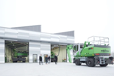 Sennebogen says the facility was designed to incorporate sustainable materials and construction techniques, with a timber-frame construction and renewable power sources.