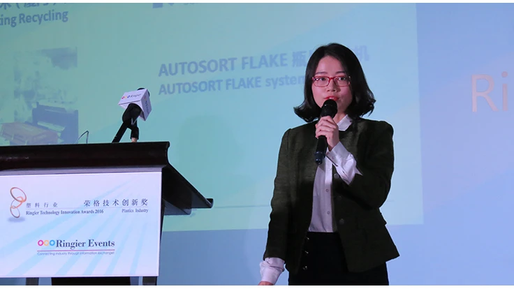 TOMRA Sorting Recycling has been named a winner in the 2016 Ringier Technology Innovation Awards in the Plastics Industry category. New to that category in 2016 was an award for Recycling Machinery, which TOMRA Sorting Recycling won for its AutoSort Flake sorting system, which was introduced to the market in China in 2015. The award was accepted by TOMRA’s Amy Guan at a ceremony in Shanghai on March 17, 2016.