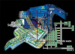 | Single Stream: | Bollegraaf single stream systems with Lubo Screens automatically separating # 8 news, mixed paper and glass and plastic containers. | |